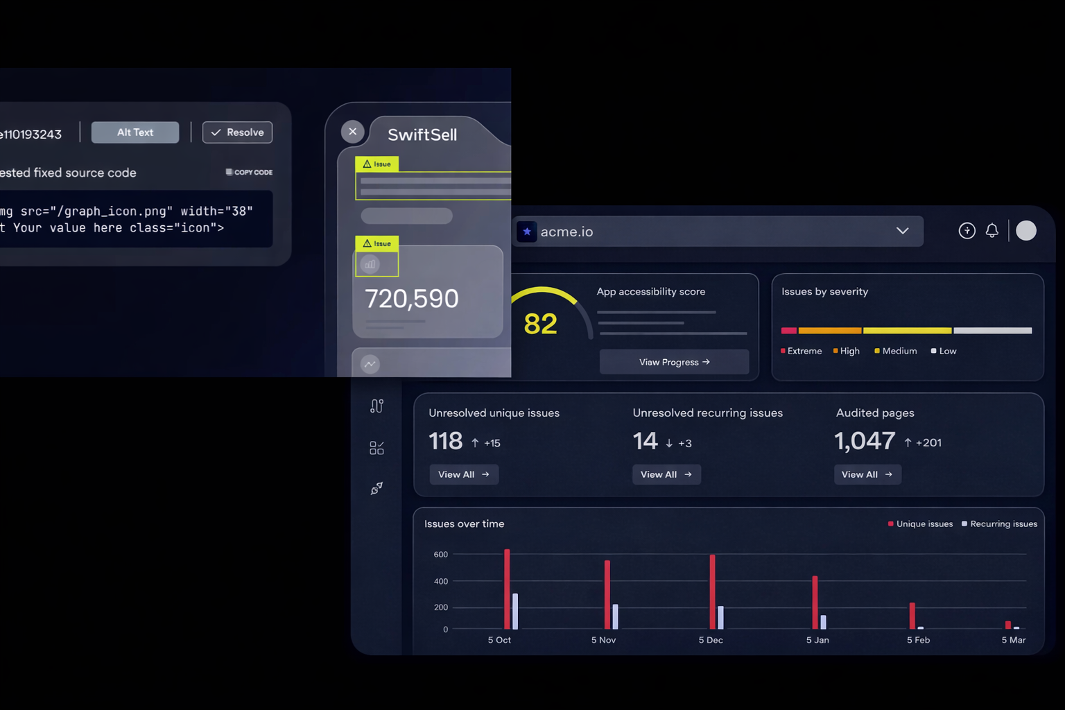 Selma erbjuder en plattform som crawlar webbplatsen, hittar tillgänglighetsbrister och ger kodförslag. Ni implementerar ändringarna manuellt i er källkod – med full kontroll.